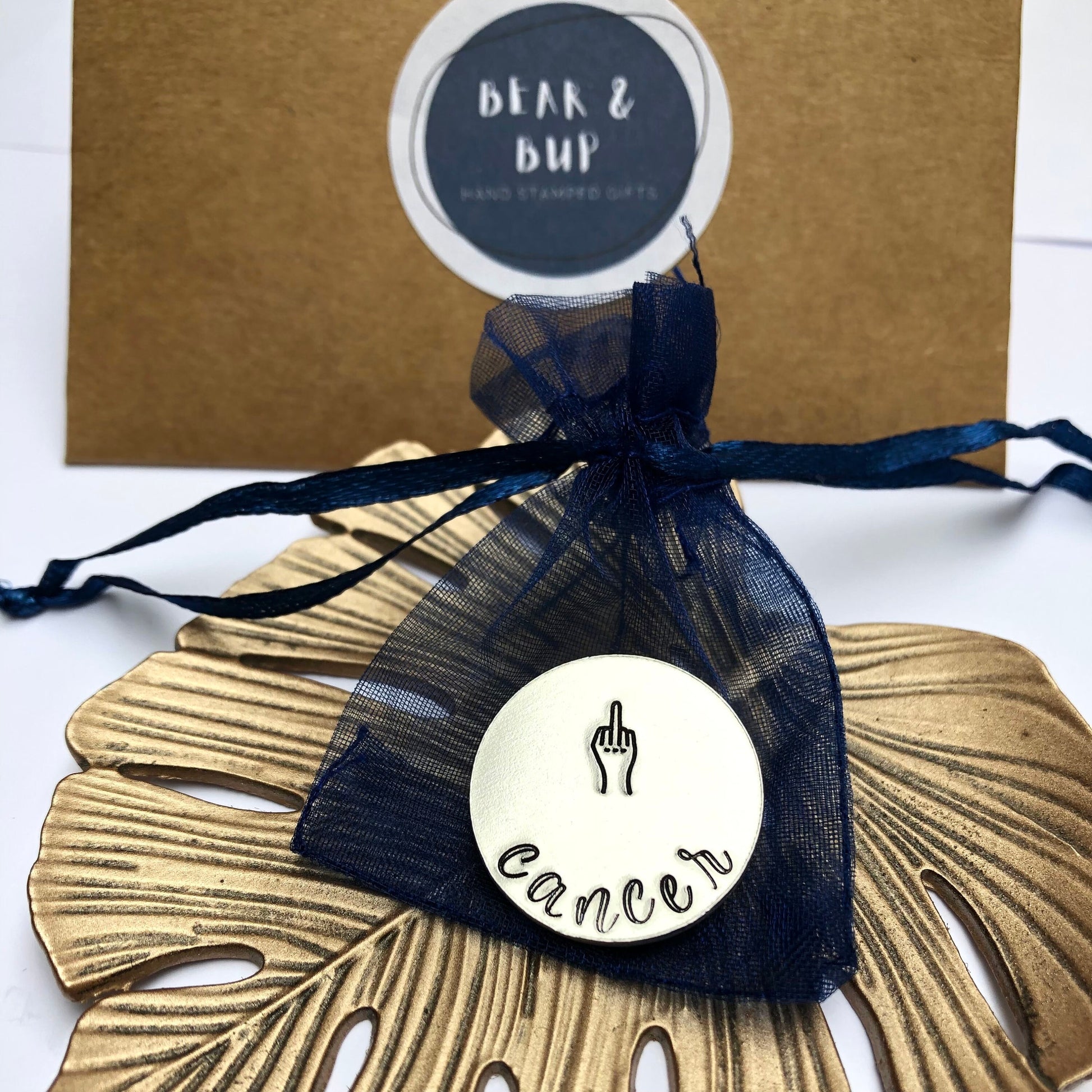 Pocket token hand-stamped with any message/affirmation you like (up to 15 letters). At only 25cm wide, these little tokens are perfect to carry in your pocket or purse. Each token comes in a little organza bag in a Bear & Bup mini envelope.